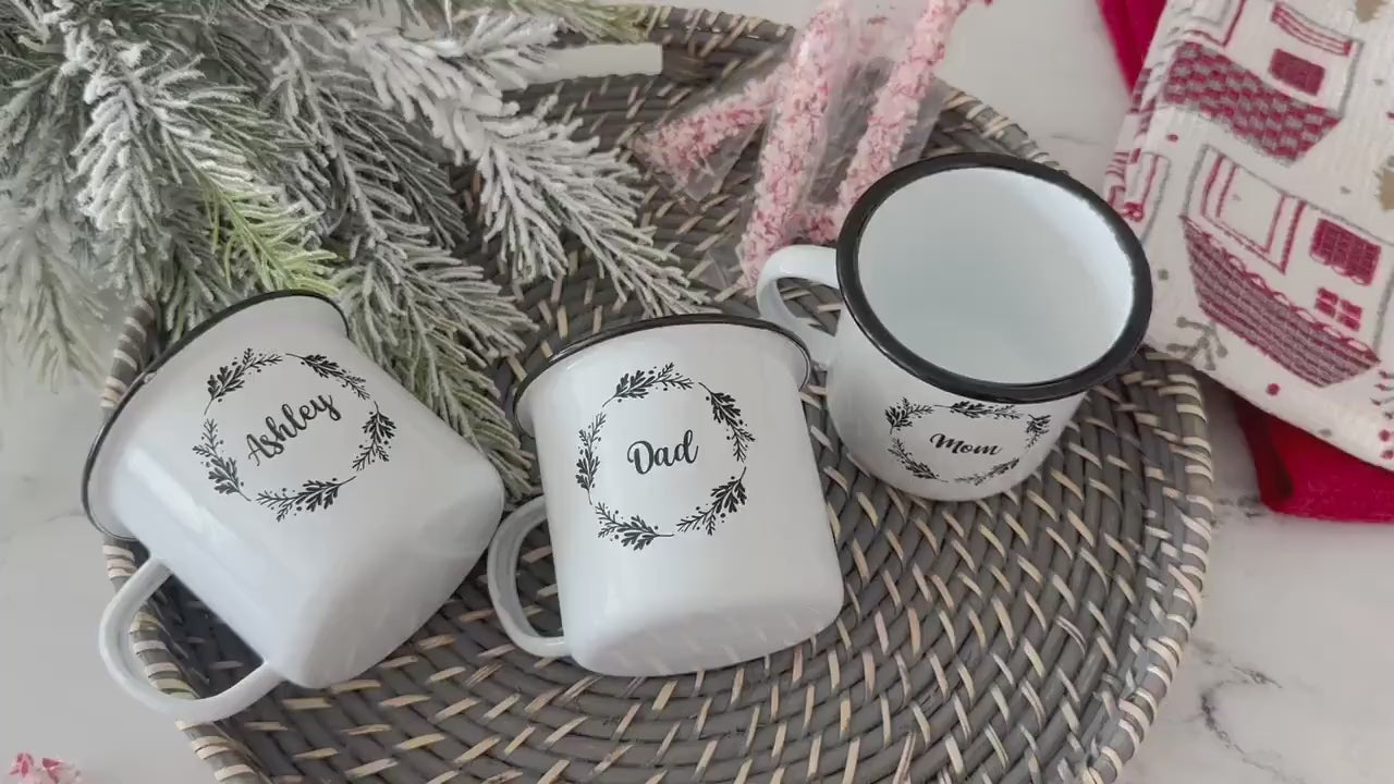 Our Personalized Christmas Wreath Mugs can make great holiday and couple gifts! This listing is for one mug.