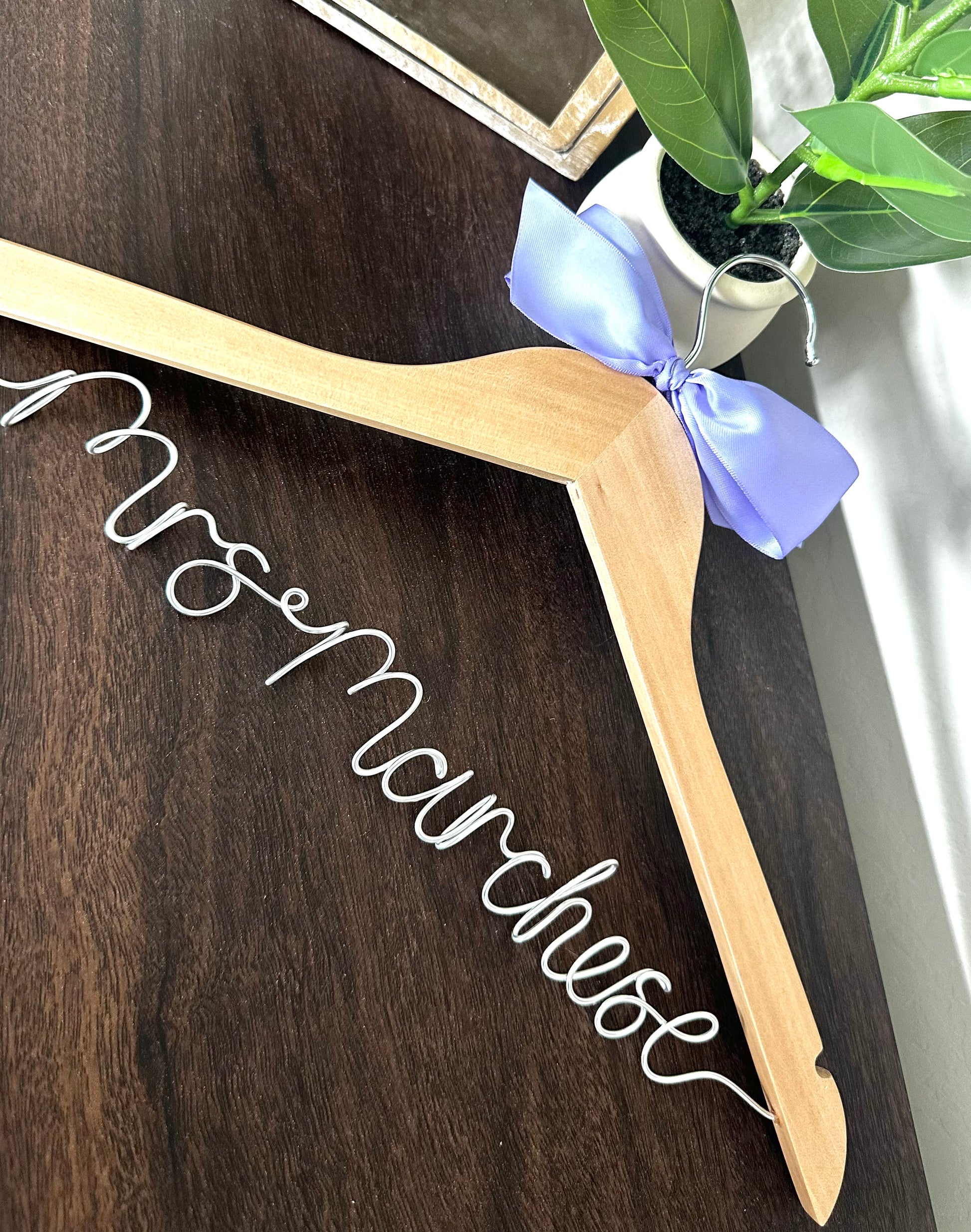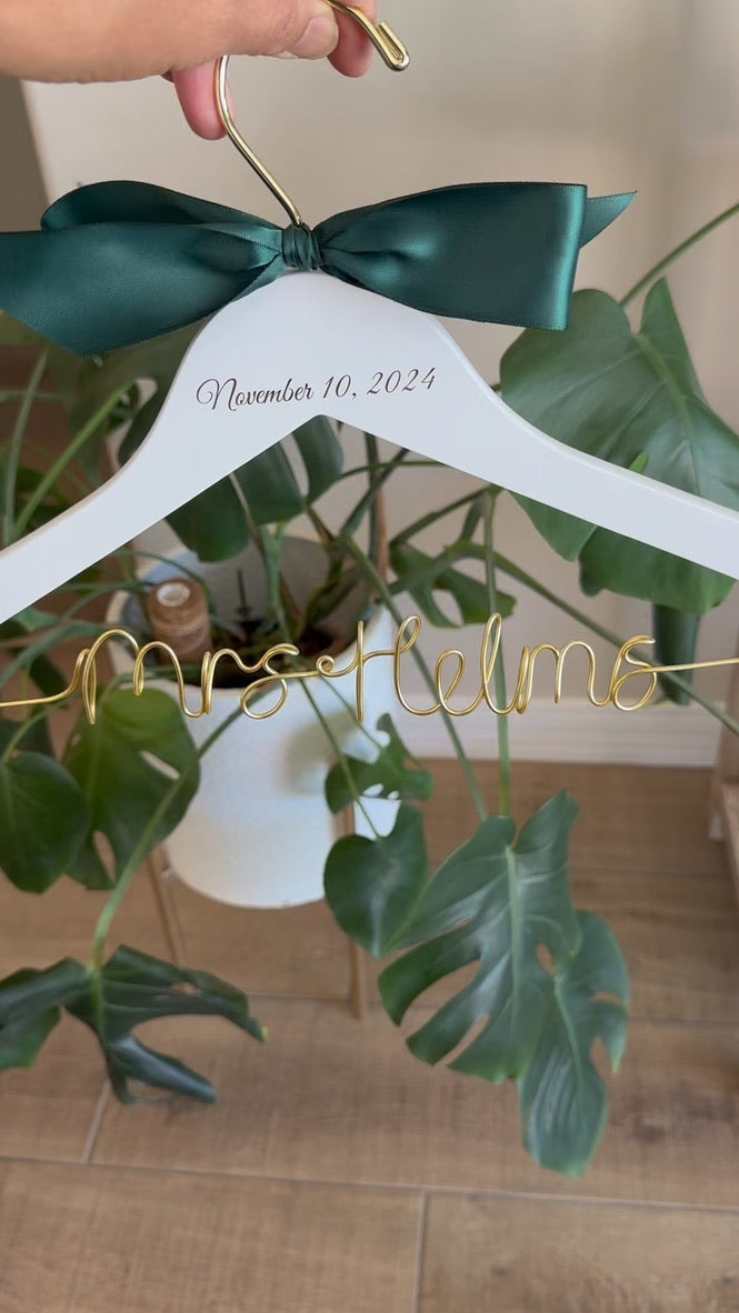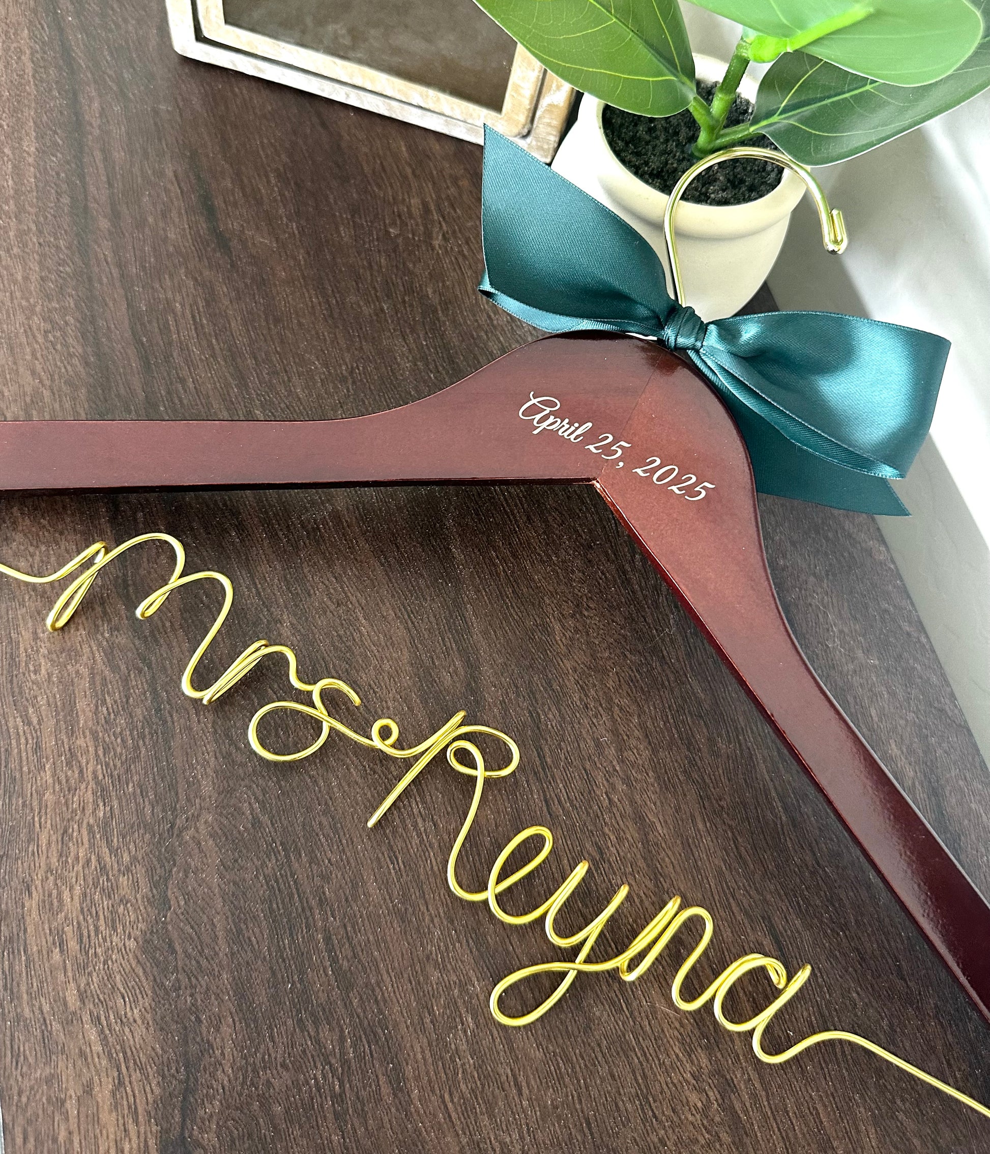 Enhance your special day with our custom wire bridal hangers! Create a unique wedding gift by personalizing it with your wedding date, new last name, and wedding colors. It's the perfect addition to make your wedding even more memorable!
