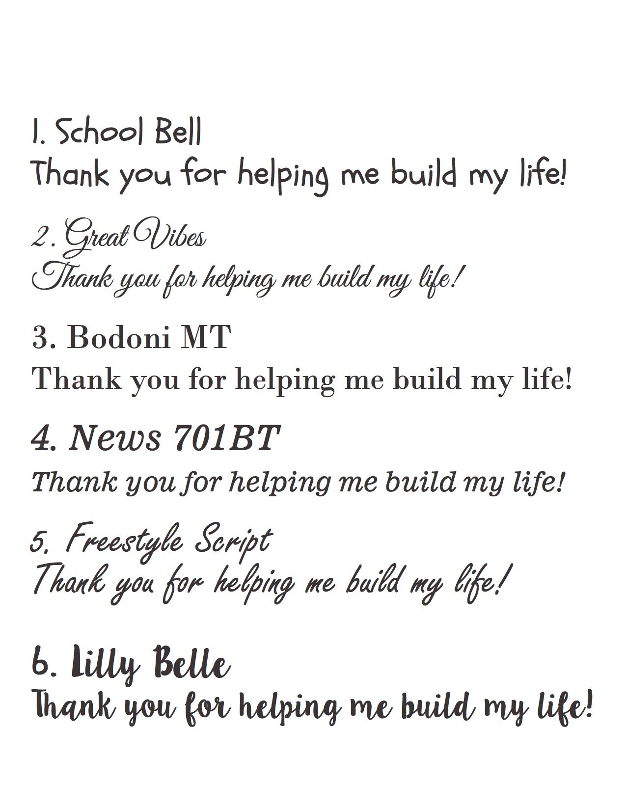 4) Indicate if you want the title and date in the same font as the phrase or a different font. The default font will be "#3 Bodoni MT".