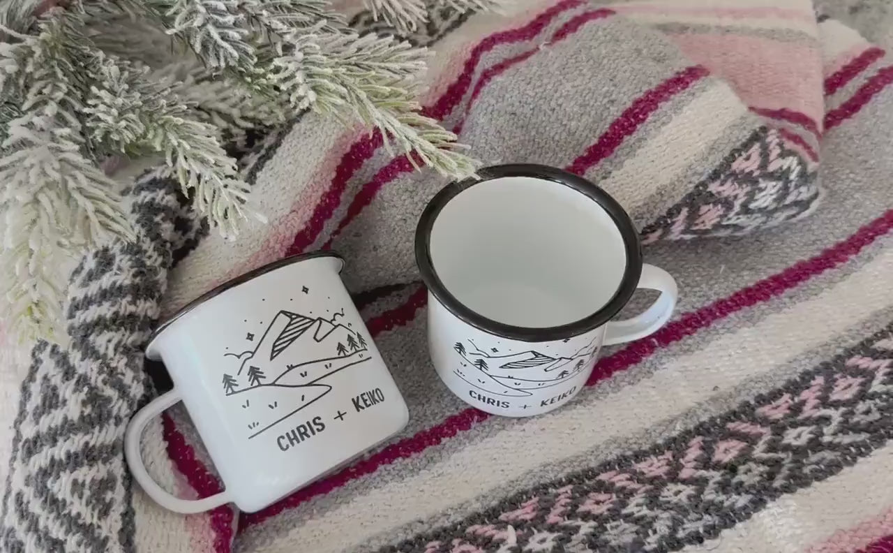 Our Outdoor Personalized Camping Mug will be sure to bring personalized style to the camp fire! Perfect for a gift for a couple, vacations, weekend get-aways and much more! Pricing for one mug.