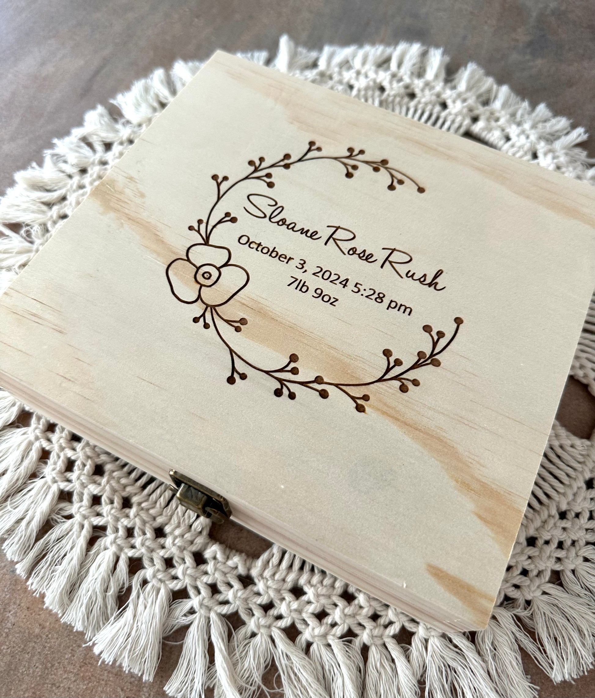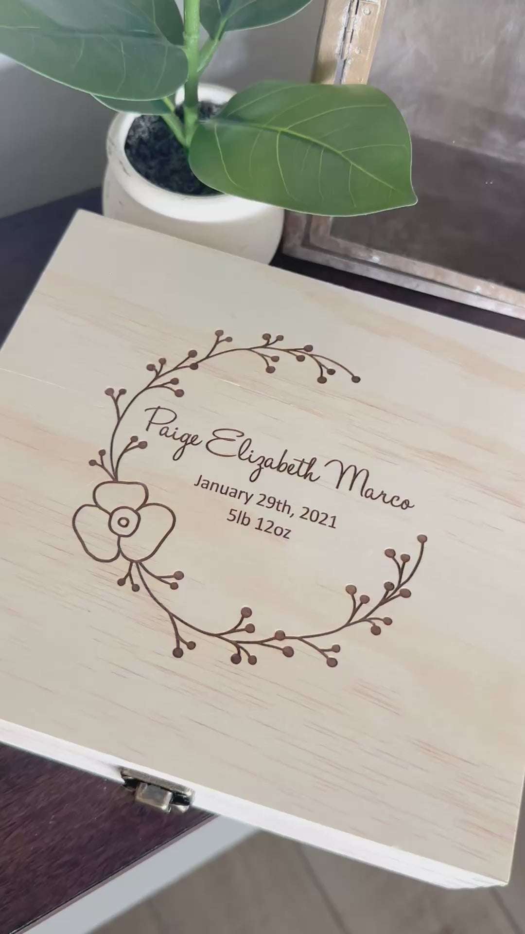Celebrate and cherish your baby’s precious moments with our custom baby memory box. Each box is crafted from high-quality wood and can be personalized with your choice of engraving, making it a unique keepsake for your little one. Perfect for storing milestones, mementos, and memories from the first year of life.